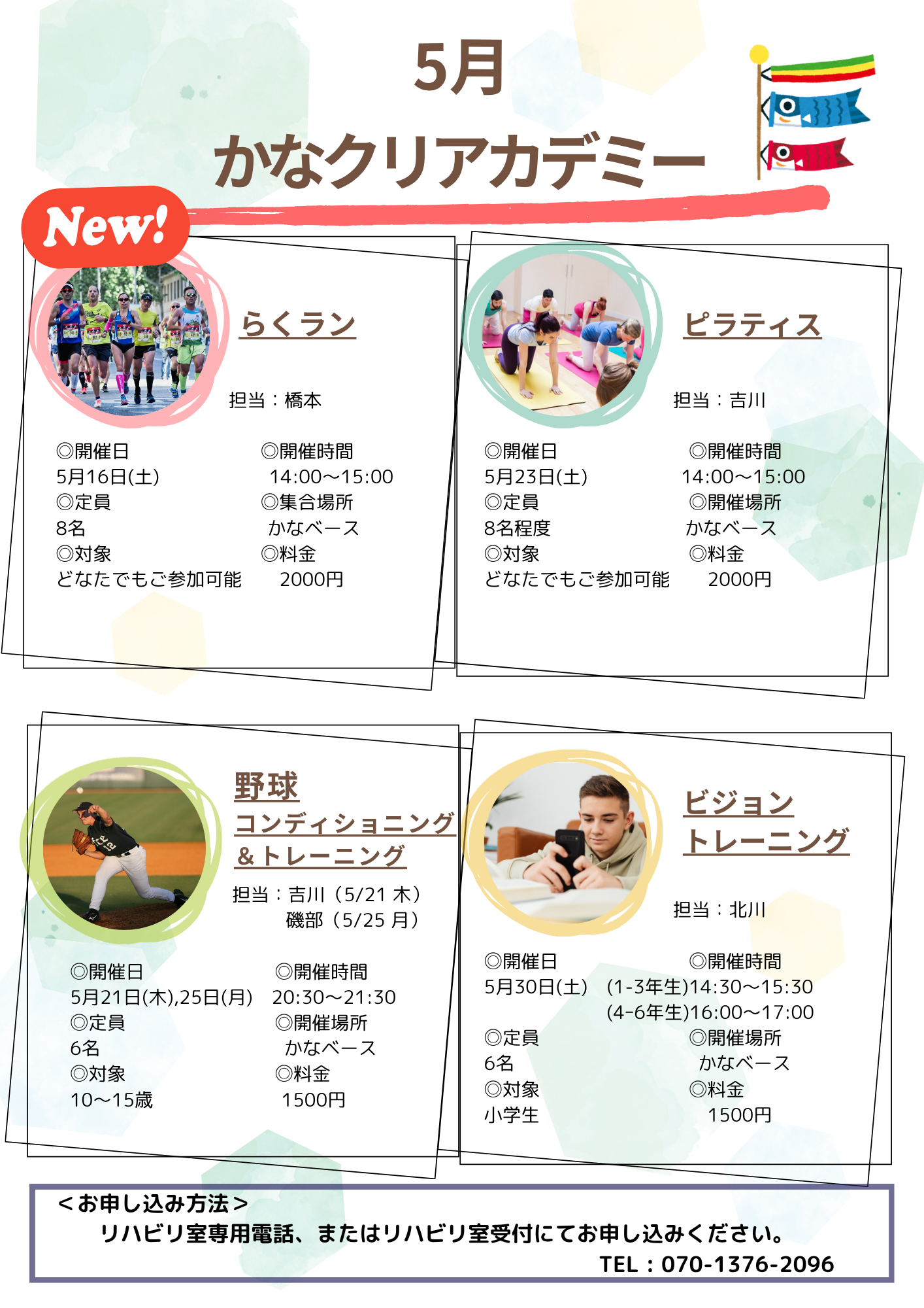 開催時間 : (スポーツコース) 14時30分〜15時30分