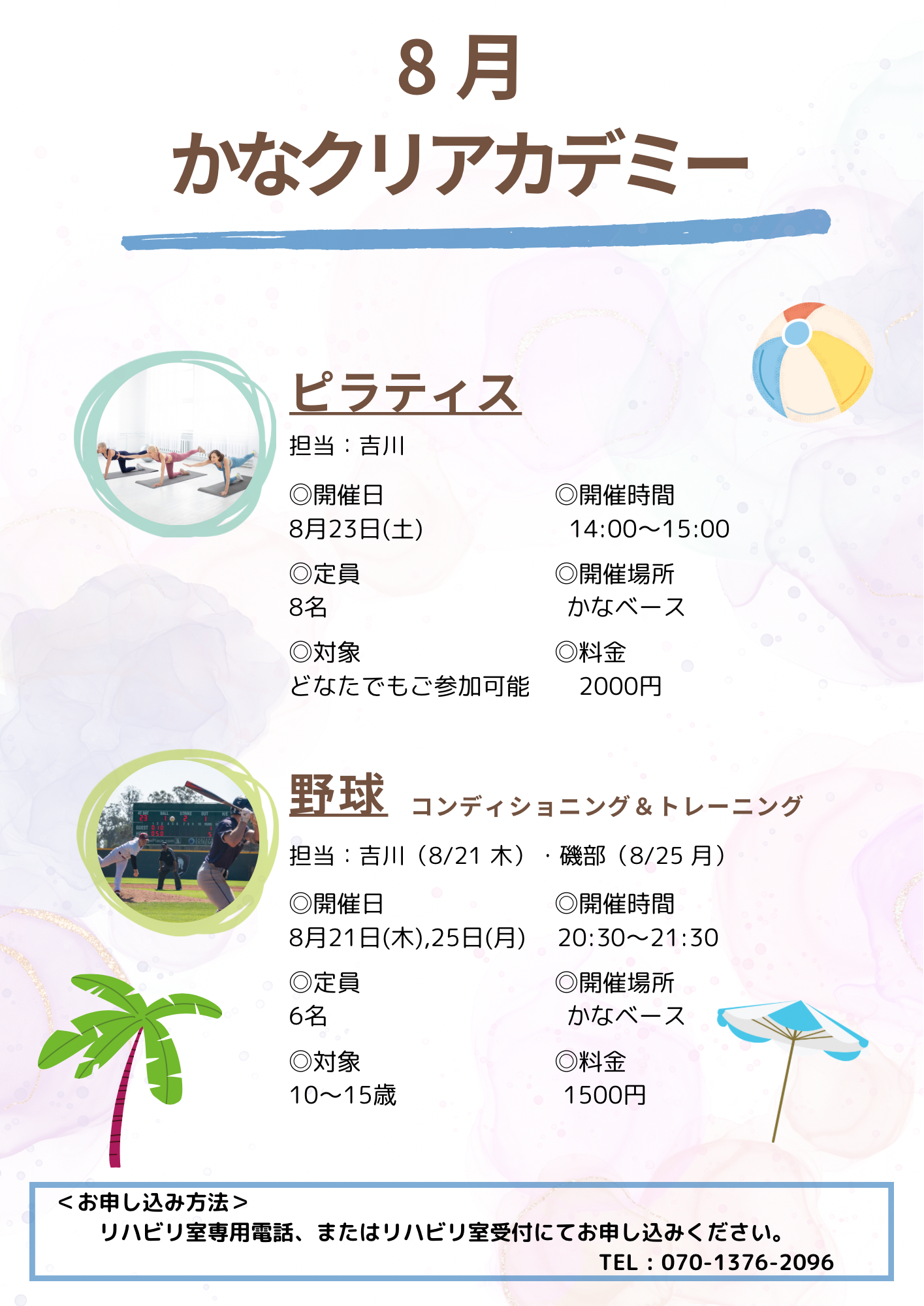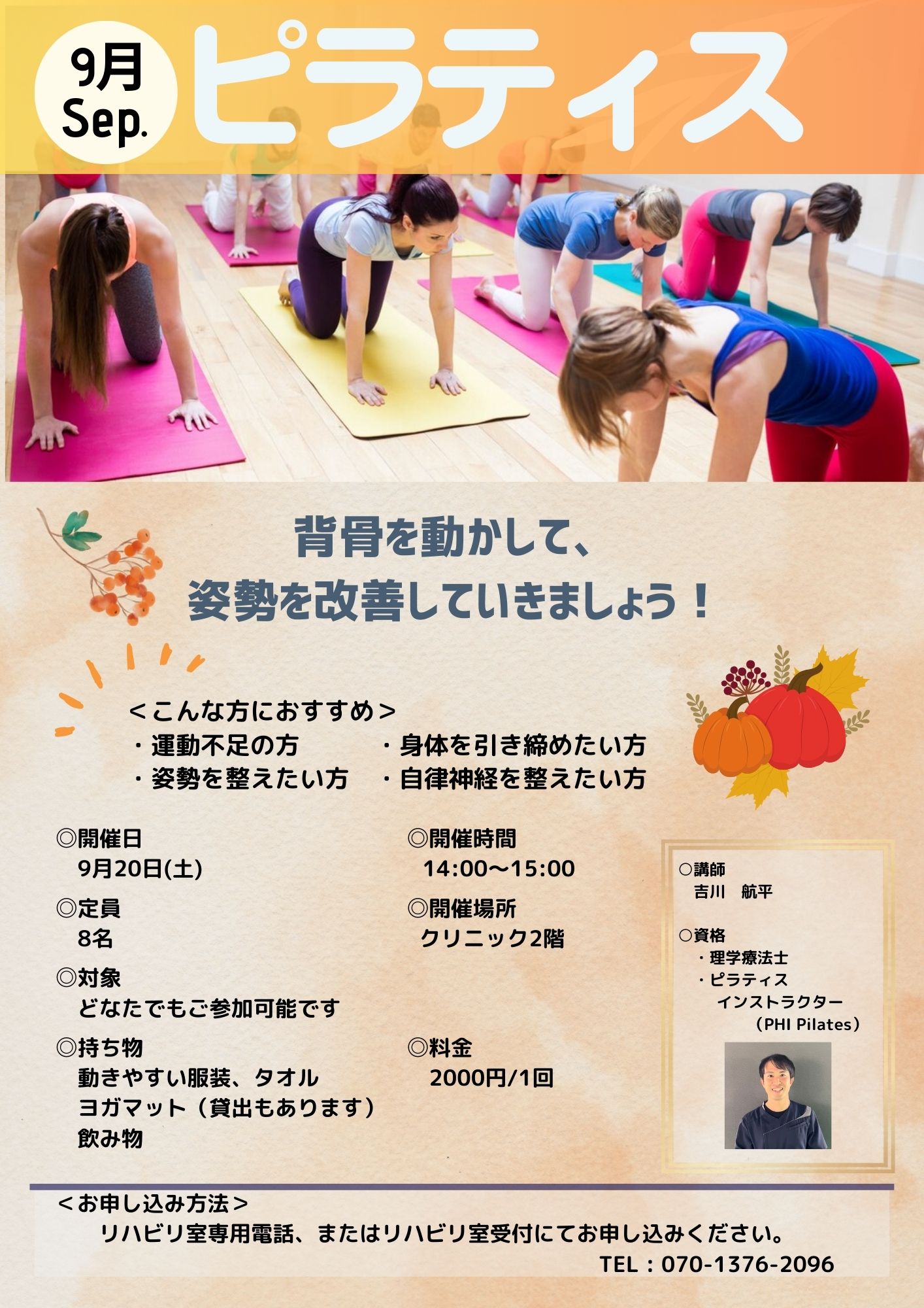 ① 12月20日(土)理学療法士の吉川航平による「ピラティス」を開催します。