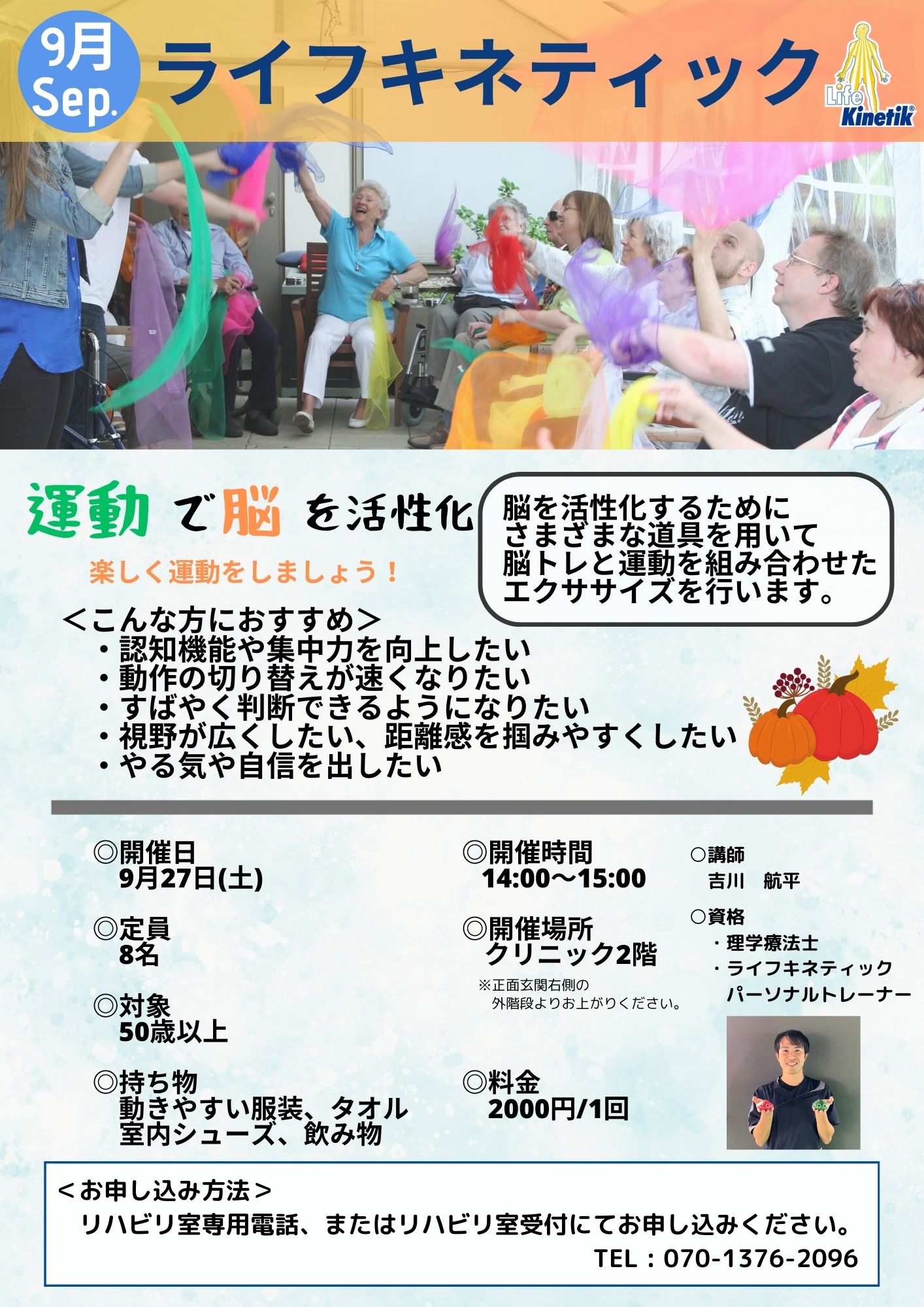 ② 12月27日(土)理学療法士の吉川航平による「ライフキネティック」を開催します。